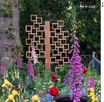 A custom FreeForm panel atached to a post creates a striking backdrop for a flower bed.